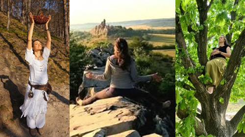 Wir erspüren die Elemente tanzend, in uns erklingend, nähern uns ihnen auf kreative Art und Weise, kognitiv und energetisch über das Pentagramm, fühlen jedes einzelne in der Natur ganz leibhaftig, stellen uns ein und sinnieren darüber, in welcher Situation man im Alltag, welches Element nähren könnte.