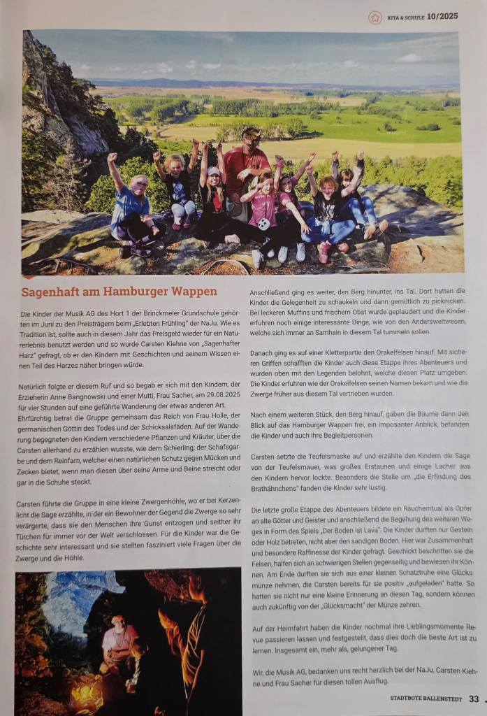 Der Artikel „Sagenhaftes Wandern“ im Stadtboten Ballenstedt